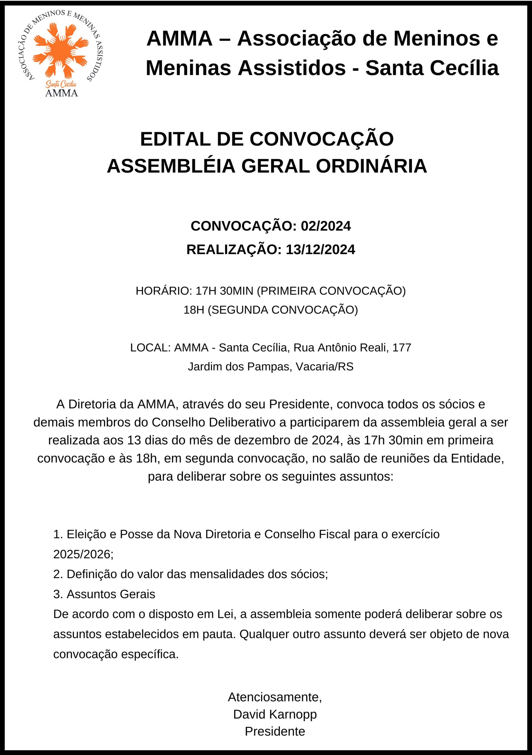 ATA E EDITAIS DA ASSEMBLÉIA GERAL DE RATIFICAÇÃO 2024-2025