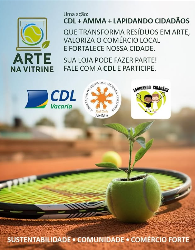 O Arte na Vitrine é uma parceria entre a CDL Vacaria, a AMMA Santa Cecília e o Lapidando Cidadãos, que dá novo destino a bolinhas de tênis usadas e tubos de bolas, transformando o que iria para o lixo em arte criada pelos jovens da AMMA. 🎾✨